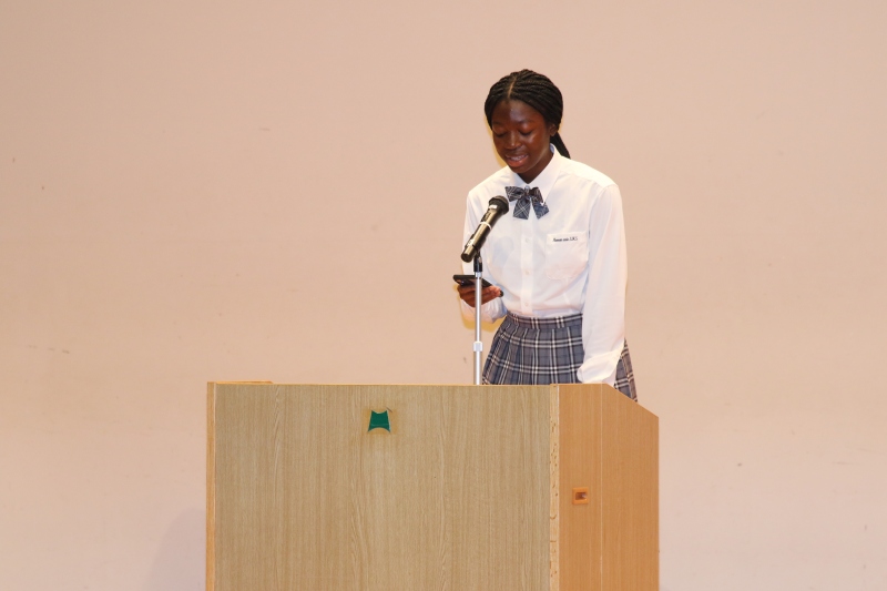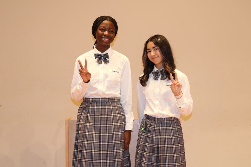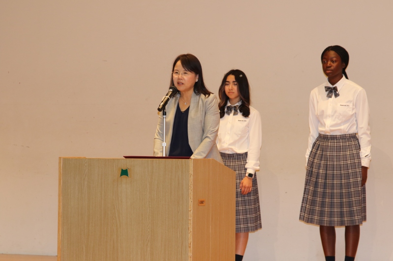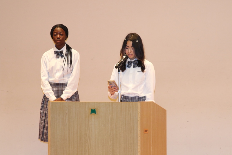 2名は、全校朝礼にて日本語で挨拶をしてくれました。