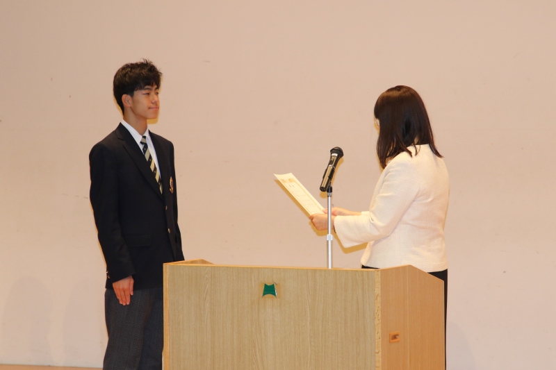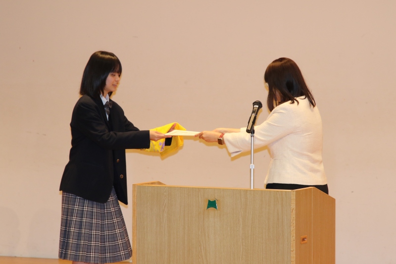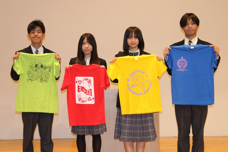令和7年11月5日(水)全校朝礼にて令和7年度学園祭クラスTシャツコンテストの表彰式を行いました。 【令和7年度学園祭クラスTシャツコンテスト結果】 1年の部:1年10組 2年の部:2年2組、2年12組 3年の部:3年12組